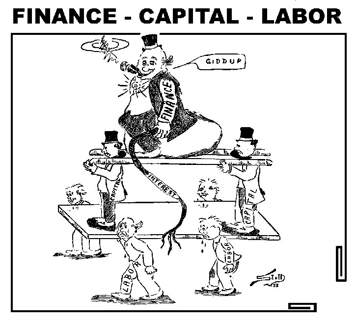 Finance is a vacuum that absorbs wealth through a fraudulent medium of exchange. It takes everything and gives nothing. Capital is the milk and Finance is the sponge. At present Finance is swallowing Capital and crushing Labor.